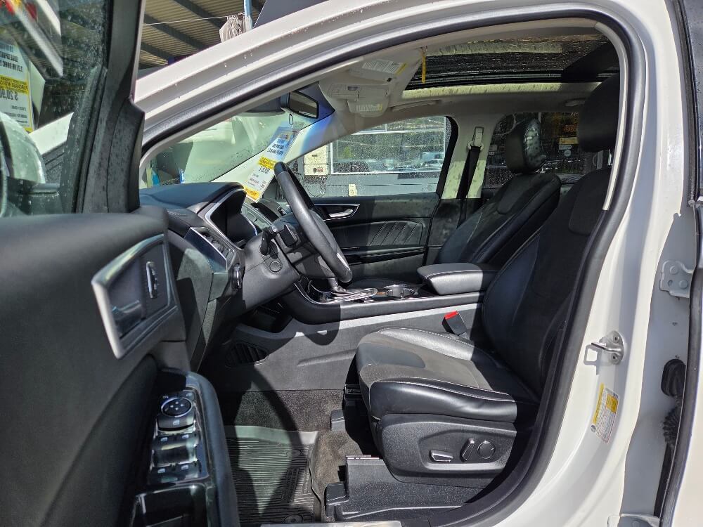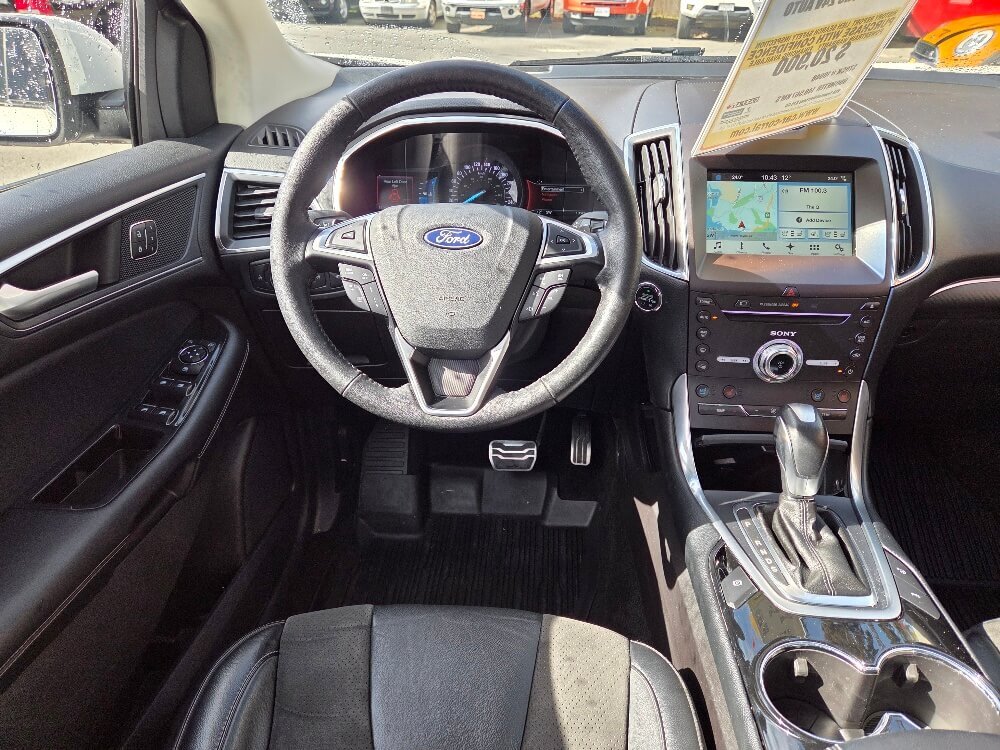 Turn heads and enjoy thrilling performance with this 2018 Ford Edge Sport AWD—a bold midsize SUV that perfectly blends power, style, and everyday practicality. Under the hood, this Edge Sport is equipped with a potent 2.7L twin-turbo EcoBoost V6 engine pushing out an impressive 315 horsepower, paired with a smooth 6-speed automatic transmission and intelligent all-wheel drive for confident handling in all road conditions. Whether you're commuting or hitting the highway, this SUV delivers strong acceleration and a sporty driving feel. Inside, you’ll find a refined and spacious cabin designed for comfort and convenience. Premium leather-trimmed seating, a power-adjustable driver’s seat, dual-zone climate control, and Ford’s SYNC infotainment system with Bluetooth connectivity keep you comfortable and connected on every drive. Plus $495 documentation fee and taxes