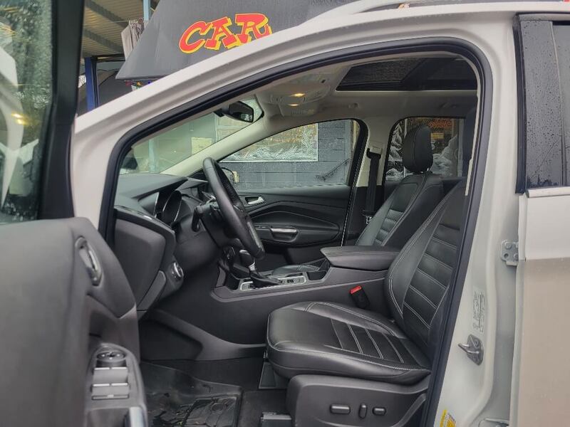This 2018 Ford Escape Titanium AWD offers a premium driving experience with the versatility and confidence of all-wheel drive. Powered by a responsive turbocharged engine and paired with a smooth automatic transmission, it delivers a balanced combination of performance, comfort, and efficiency for year-round driving. The Titanium trim is well equipped with luxury features including leather seating, heated front seats, a power panoramic sunroof, dual-zone climate control, and a touchscreen infotainment system with Bluetooth connectivity and navigation capability. Advanced safety and convenience features such as a rearview camera, blind-spot monitoring, remote start, and push-button start enhance everyday usability. Plus $495 documentation fee and taxes.